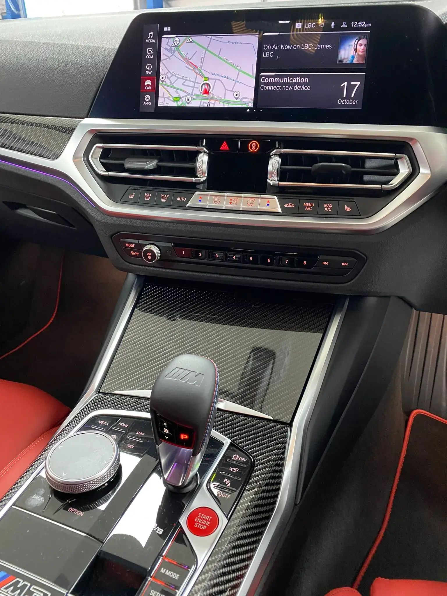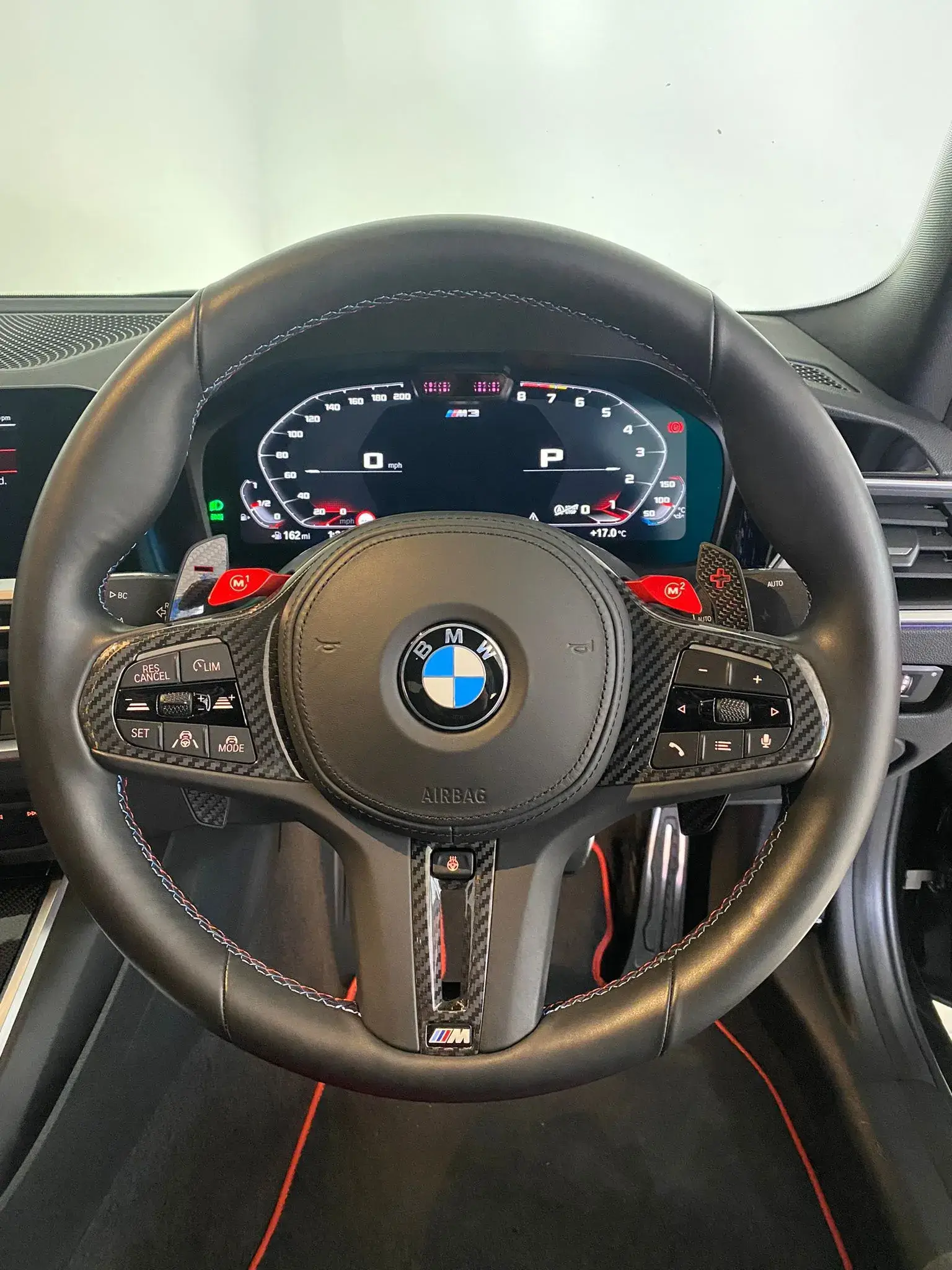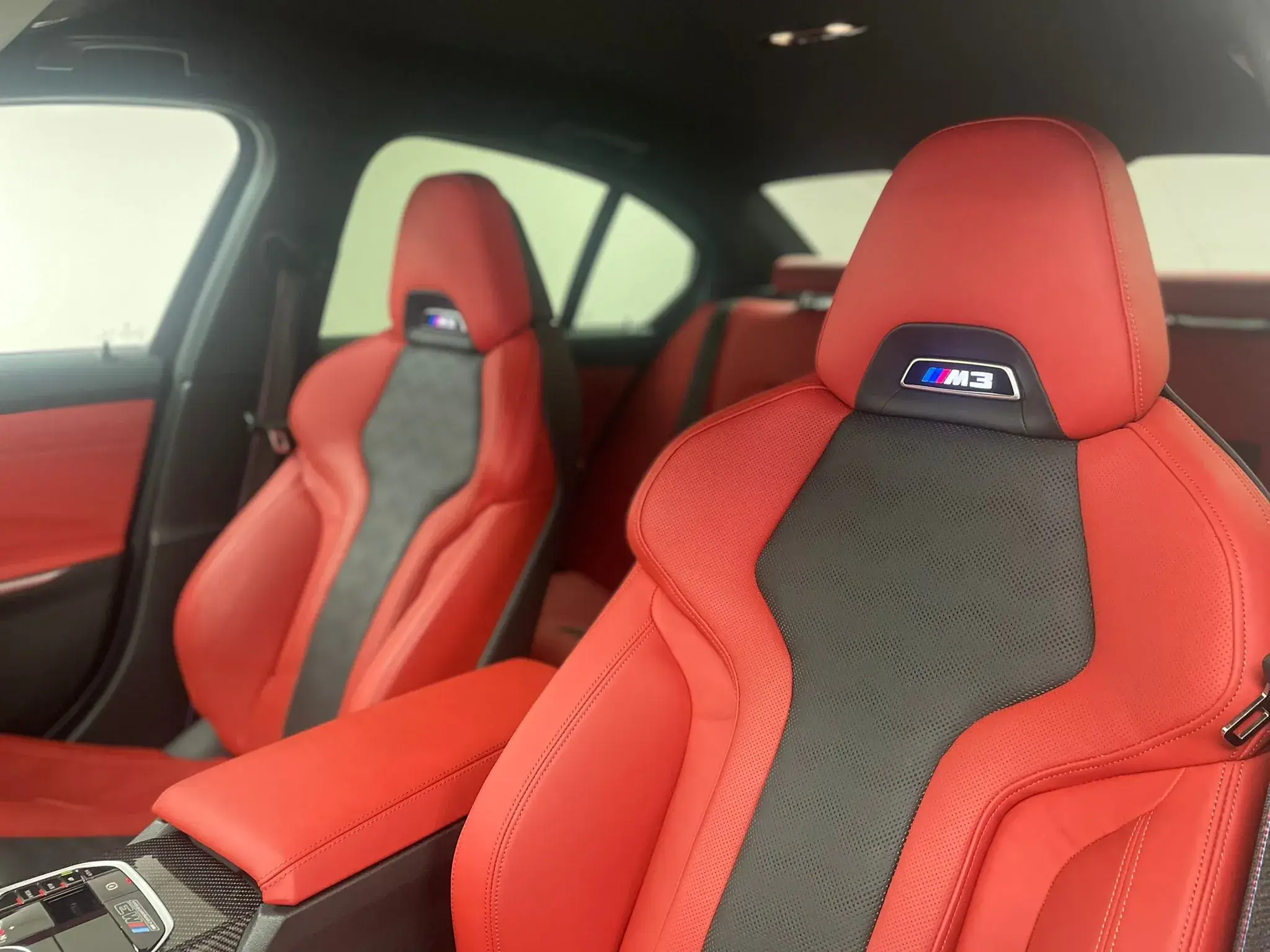 Stunning All New M3 Competition XDRIVE Finished In Black Sapphire Metallic With Individual Fiona Red Extended Merino Leather. Fantastic Spec Inc: M Carbon Exterior Pack, Carbon Interior Trim, Comfort Pack, Technology Plus Pack, Visibility Pack, Laserlights, Heated Steering Wheel, Electric Bootlid, Comfort Access, Driving Assistant Professional, Parking Assistant Plus, Drive Recorder, M Sport Differential, Head Up Display, Harman Kardon Surround Sound, 19/20″ Jet Black M Forged Alloys, Galvanic Controls, Sun Protection Glass, Electric Heated Seats With Memory, Adaptive Suspension, Power Folding and Auto Dimming Mirrors, M Seat Belts, DAB, Connected Pack Pro, Enhanced Bluetooth, Red Calipers.